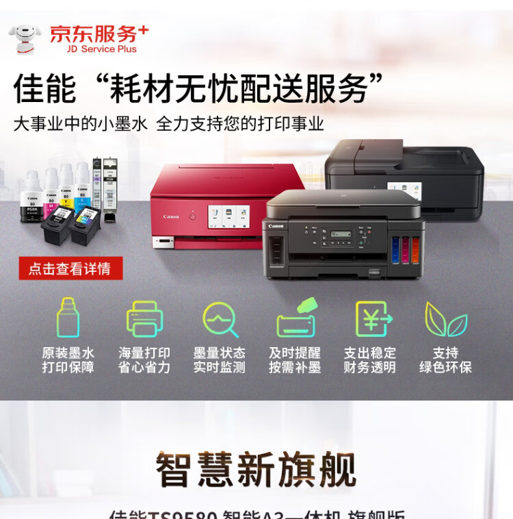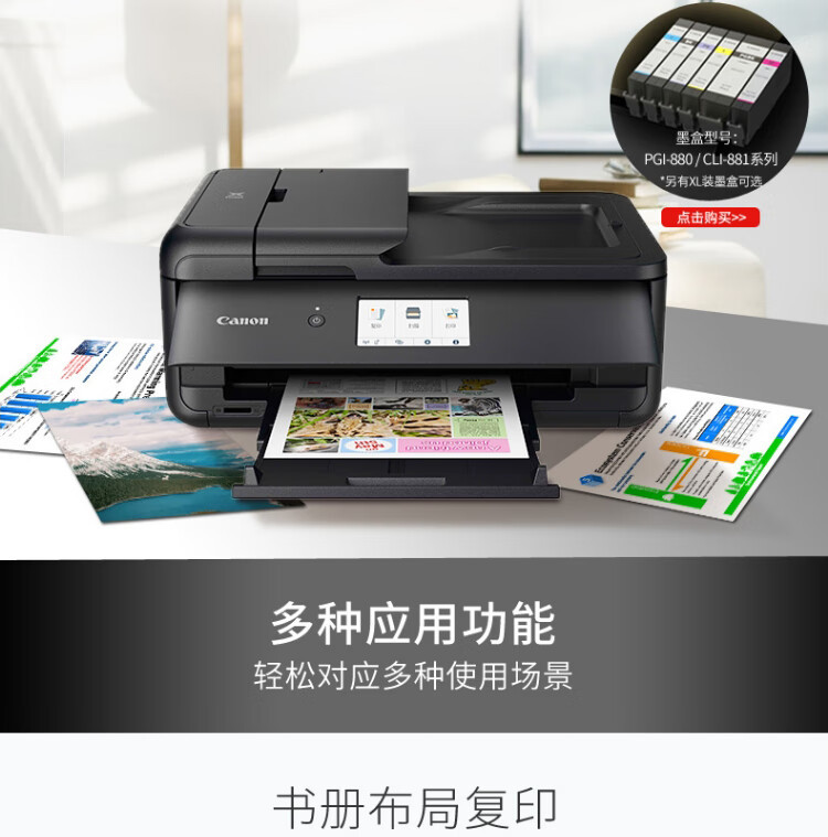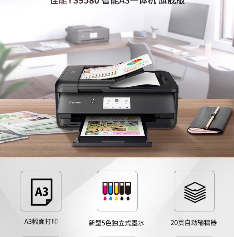 佳能/CANON TS9580 A3 彩色打印機 A3幅面無線彩色噴墨多功能一體機打印/復印/掃描 微信