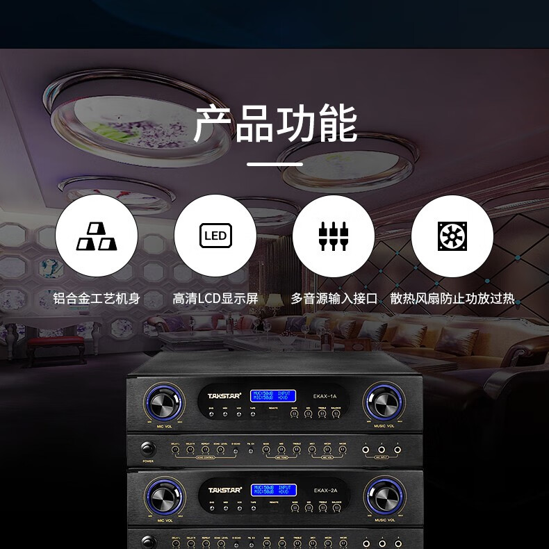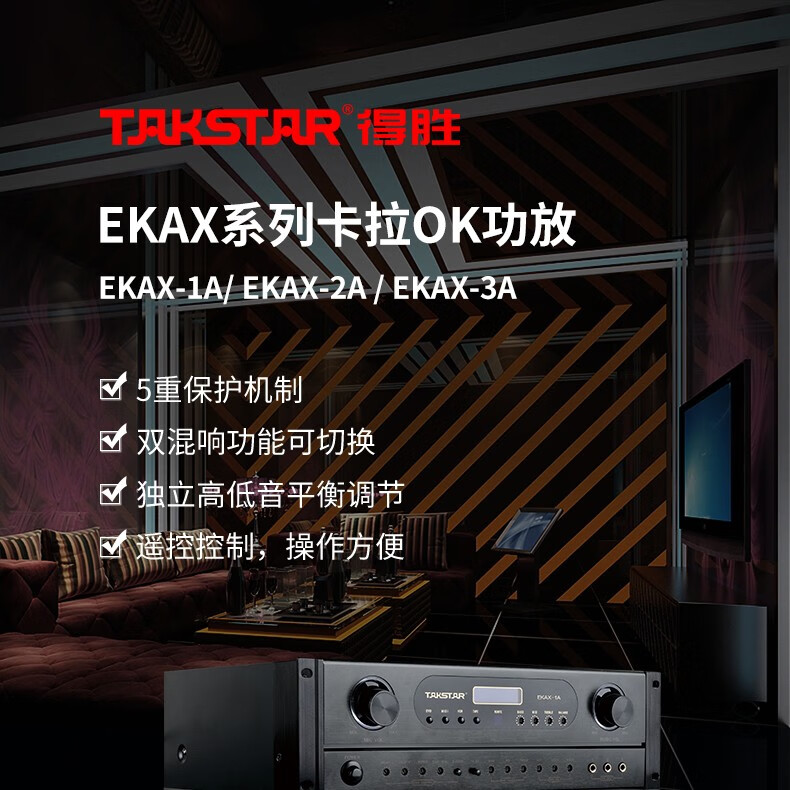 得勝/TAKSTAR EKAX-2A 音頻功率放大器設備(功放設備)合并式功放 雙混響帶音樂和錄音輸出反饋抑制功能 家庭KTV會議背景音樂功率放大器
